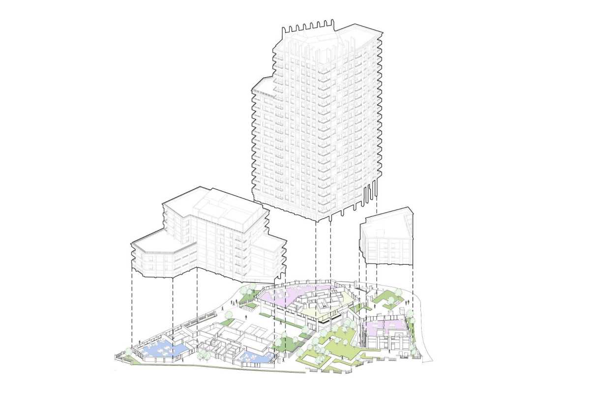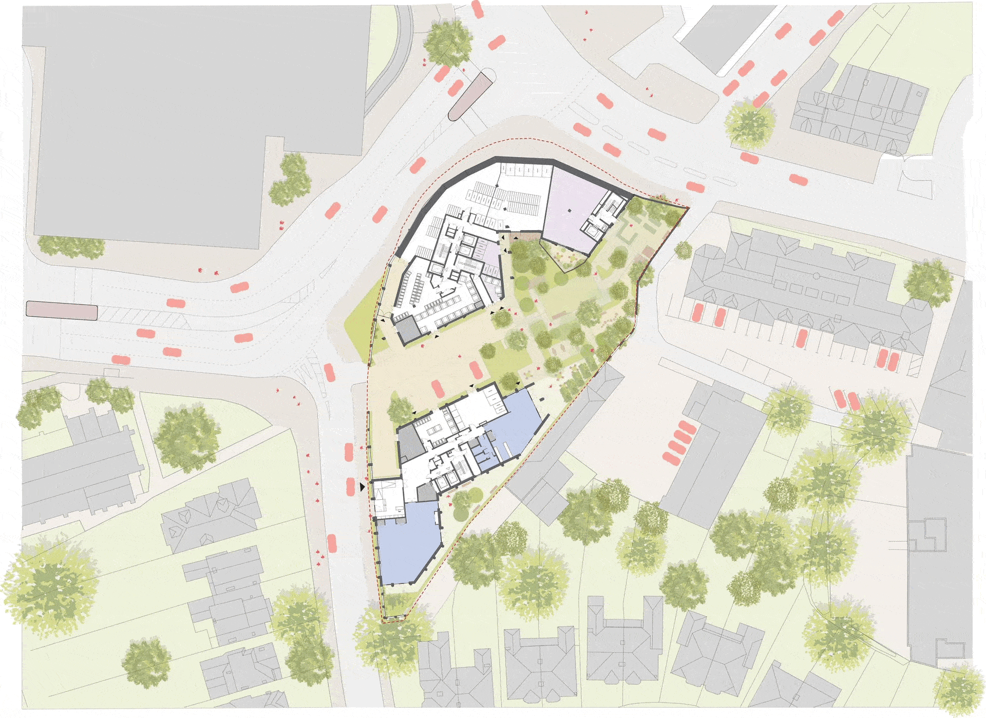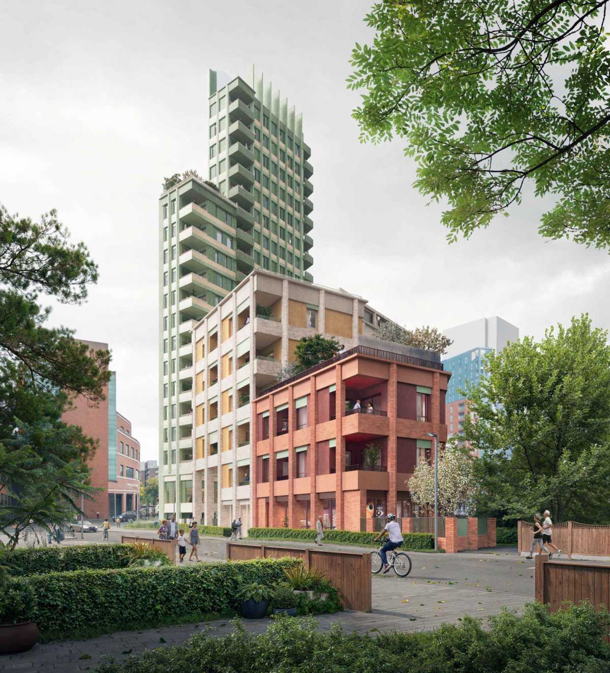 Three distinct buildings shape the development, responding to their immediate context while forming a coherent family. Each has been carefully designed to bring activity to the street, repair inactive frontages, and create new connections across the site.