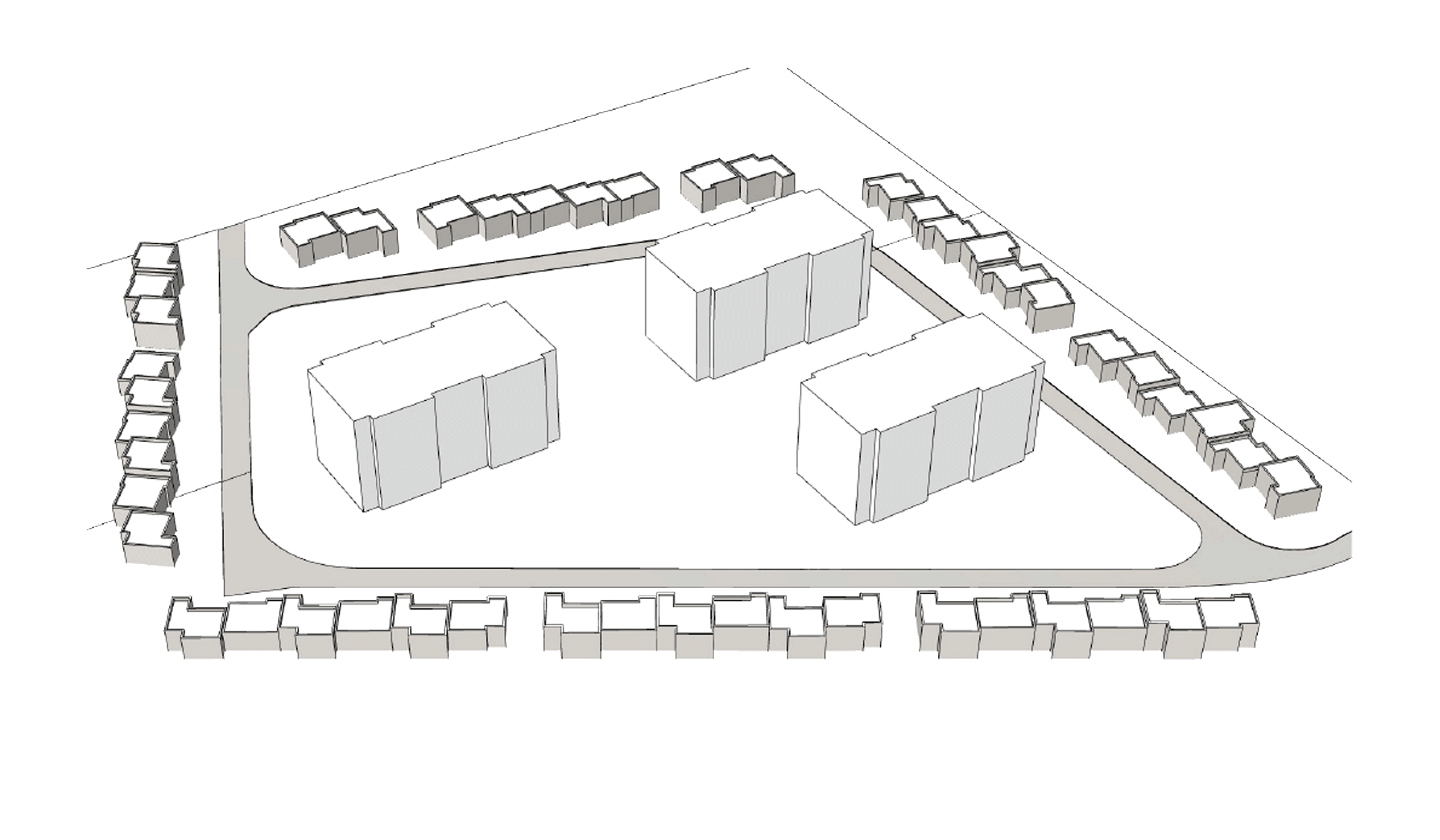 Our competition winning scheme proposed to replace the towers with medium-rise blocks and low-rise terraces to create a human scale environment with a variety of places for play and social interaction. The layout and phased construction of the new proposals was conditioned by two key requirements: archeologists consider the site to be a Roman site of international importance so large areas of open space had to remain ‘untouched’ and all residents would remain on site throughout the redevelopment process.